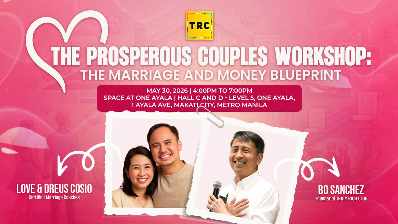 Come and join marriage coaches Dreus and Love Cosio for the The Prosperous Couples Workshop: The Marriage and Money Blueprint, where you’ll learn how to converse with your spouse about money matters in a calm and consistent manner.